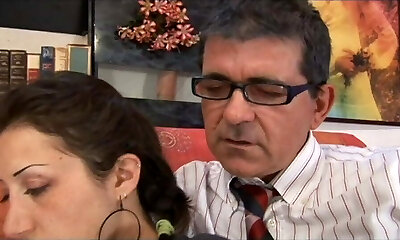 Tasty looking blond Czech nubile gives a head to erected penis of horny daddy