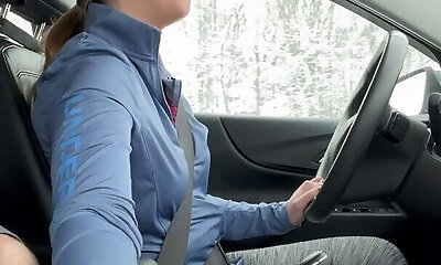Torrid BRUNETTE Gives Her Passenger a HANDJOB