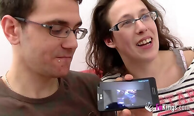 Adorable amateur babe in glasses pawns her slit to earn money