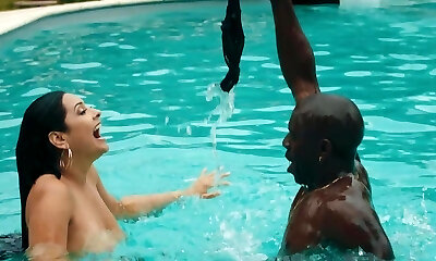 невероятная большая грудь маловата и умопомрачительные японские женские позы в купальнике возле бассейна