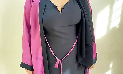While the Desi step-mother washes bra & panties, stepmom took off the stepson's pants and Naked him, Then asks him to fuck her - Cum