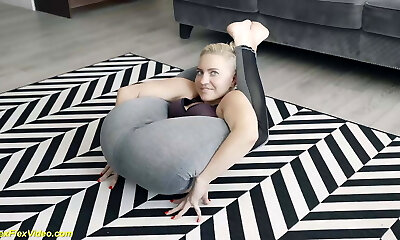 agile anna in nylon catsuit lampeggiante straordinaria contorsione