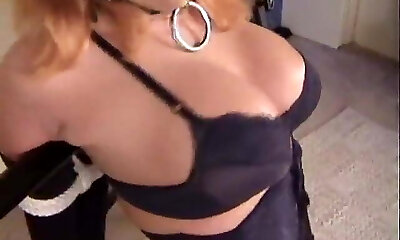 grandi tette cougar lucy alexandra si masturba in cappello, guanti e nylon con i tacchi a spillo