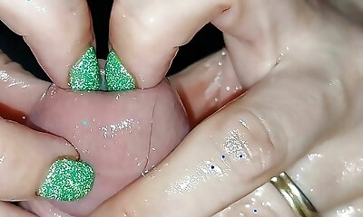 sorellastra uretrale suono cazzo con 12 pollici dilatatore, cbt, masturbazione con la mano, cum blocco orgasmo