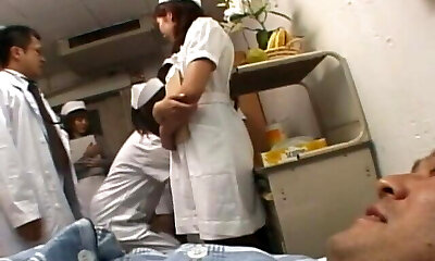 The nurse lady is wedged into the twat and anal hook-up by the patient and pops out of the vagina, and the blowjob eats the semen