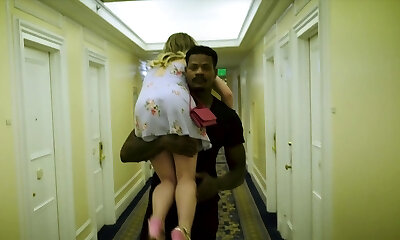 горячая рыжеволосая шлюха, жаждущая секса на большой черный член, наслаждается огромным членом своего друга-монстра, а затем просит его разрушить ее киску