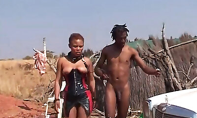 негритянка-бродяжка с прелестной грудью на диване рвет аппетитного цепеша