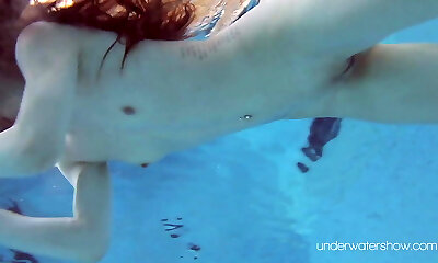 потрясающая миа плавает обнаженной в бассейне