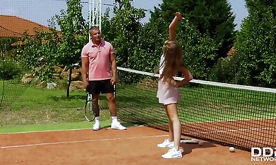 потрясающая теннисистка с огромными грудями соглашается на похабный трах в сфере