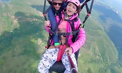 брызгающая мокрая киска в небе на высоте 2200 м в облаках во время полета на параплане 18 мин