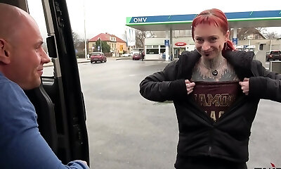 парень ест вне дома и трахает цыпочку с большими сиськами