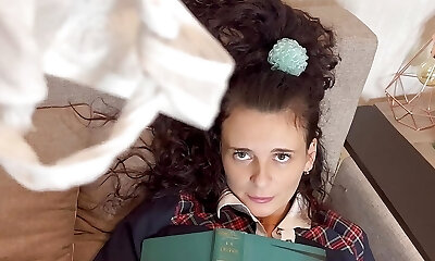 моя горячая сводная сестра в школьной мини-юбке застряла под стулом, и я не могу устоять перед возможностью поколотить ее